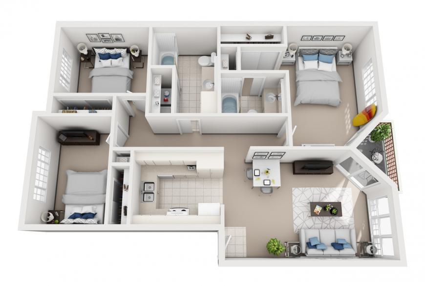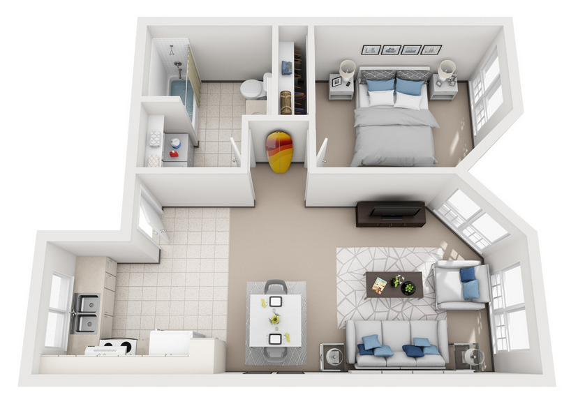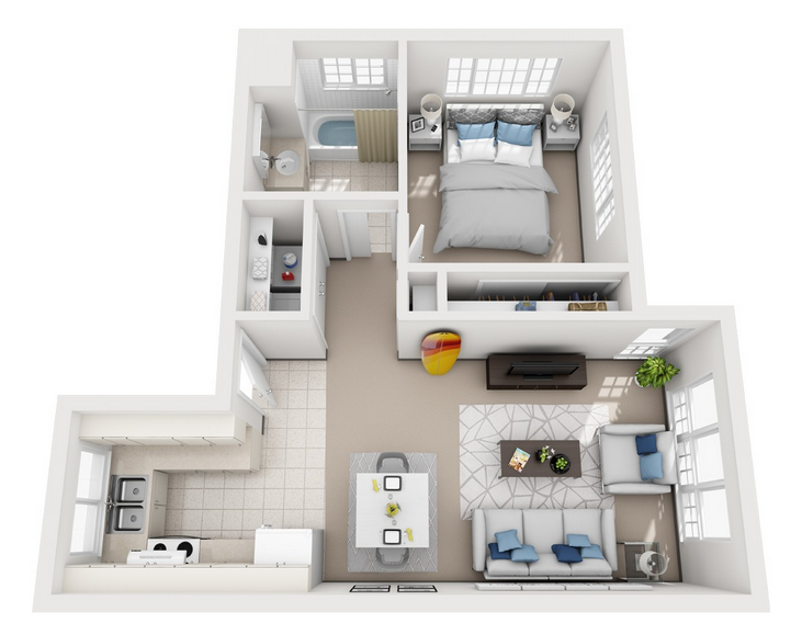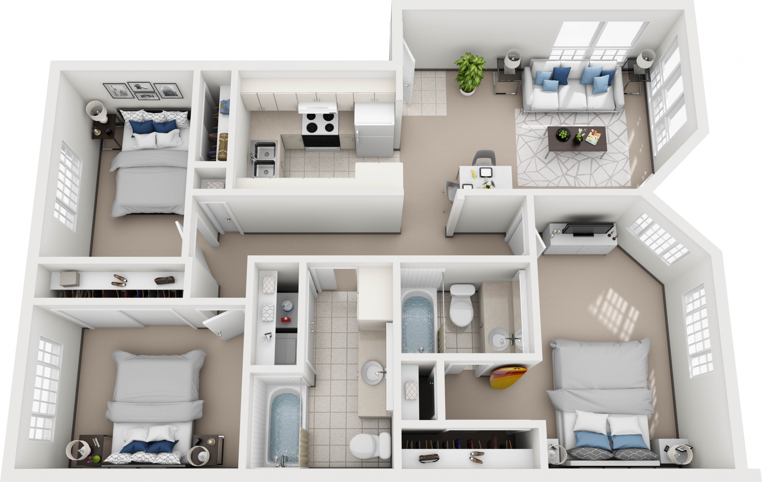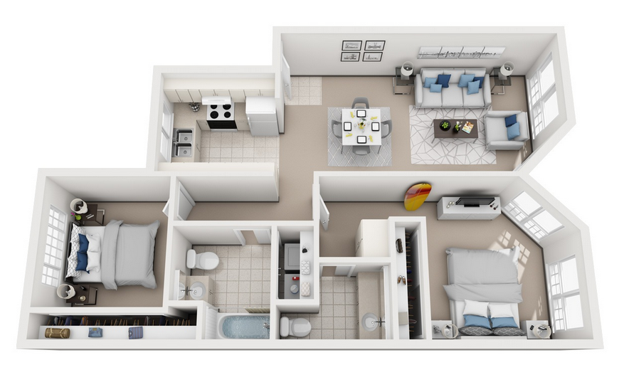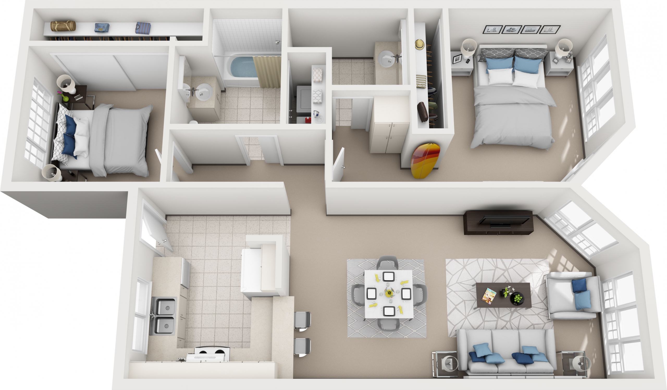 Scroll down to view a sampling of our one, two and three bedroom floor plans.